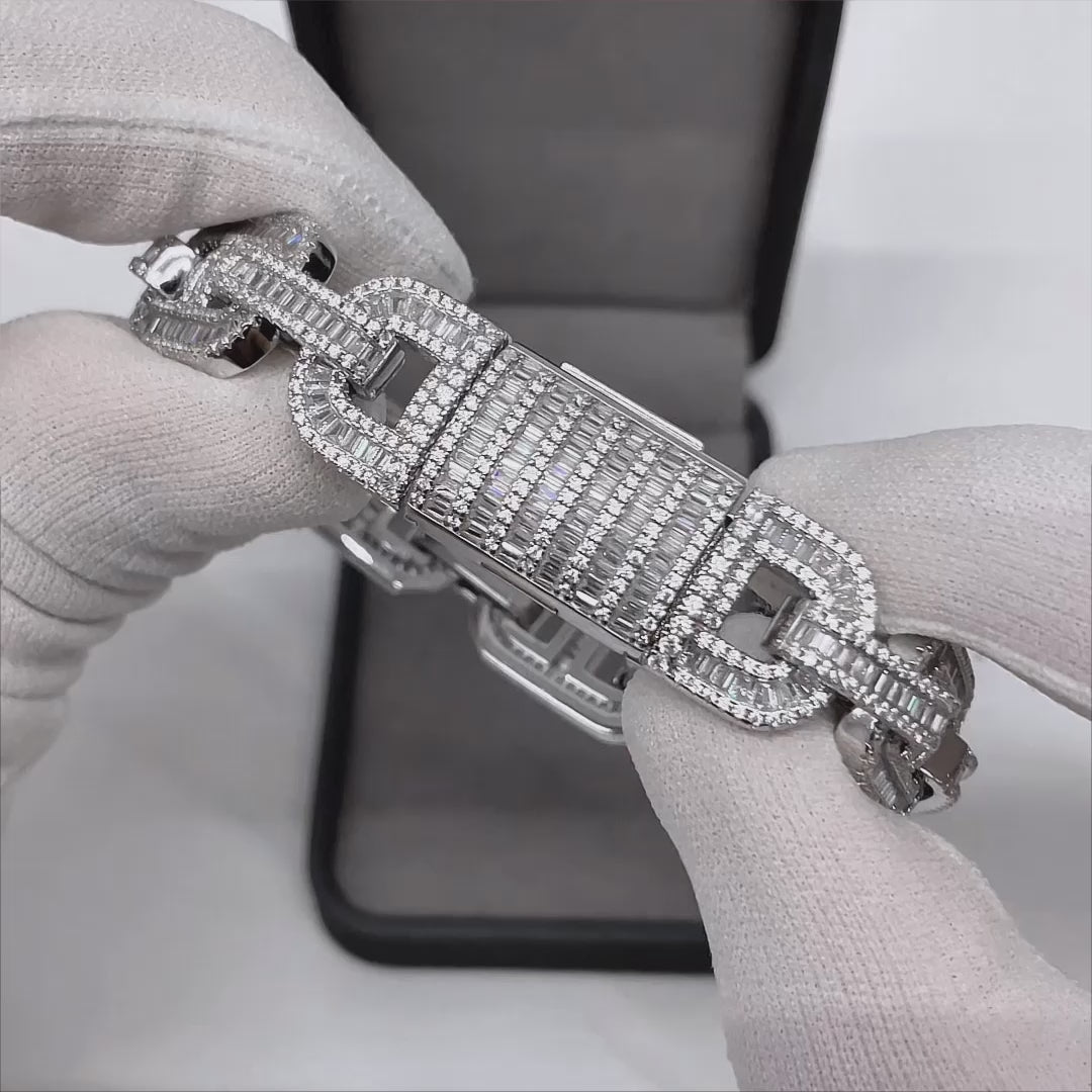 PULSEIRA BAGUETE MARINER ICE CRAVEJADO 15mm - 19cm - Prata 925