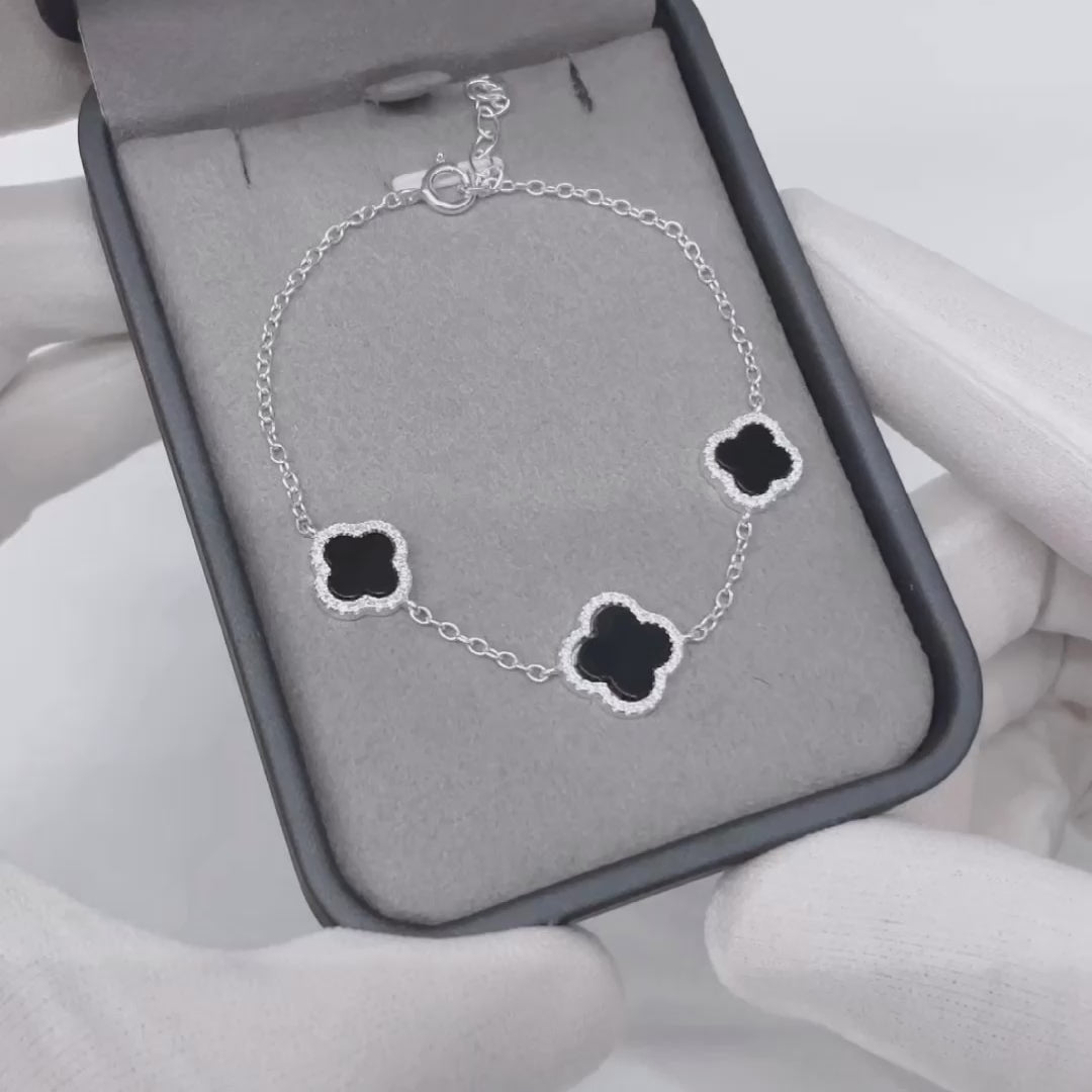 Pulseira 3 Trevos Black cravejada em Prata 925