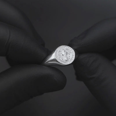 Este anel masculino São Bento em Prata 925 combina estilo e proteção em uma peça sofisticada. Seu design exclusivo traz a imagem tradicional de São Bento, simbolizando fé e força. Feito em prata de alta qualidade, oferece durabilidade e acabamento impecável. Use este anel para destacar sua personalidade com elegância e carregar um amuleto poderoso no dia a dia.